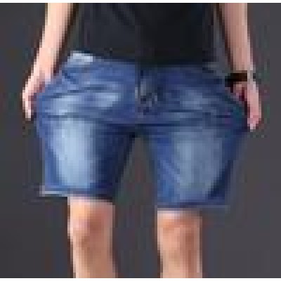 титульная страница > Мужская мода > Оверсайз Мужские джинсовые шорты Мужские эластичные талии Пятиточечные брюки Длина до колена Свободн
