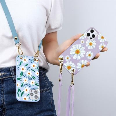 Цветочная пара Crossbody Ремешок Шнур Цепочка Ремешок Ремешок Чехол для телефона для iPhone 11 12 13