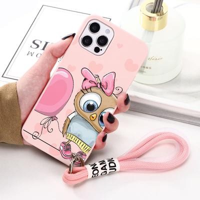 Симпатичный Сова Мультяшный ремешок Ремешок для телефона Чехол для iPhone 13 12 11 Pro Max Xiaomi Mi