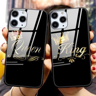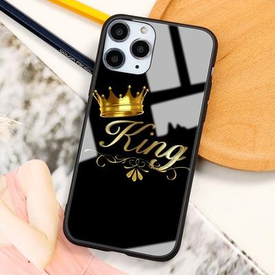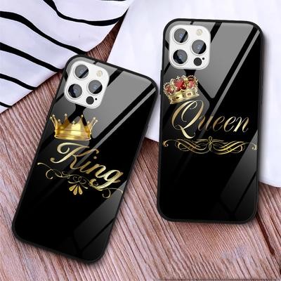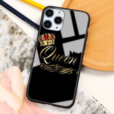 титульная страница > Электронная продукция > Пара Королева Король Корона Бриллиант Закаленное стекло Чехол для телефона для iPhone 13 12 11 SE 20