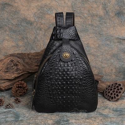 Натуральная кожа Ретро Многоцелевая сумка на плечо Женщины Рюкзак Тиснение Крокодил Узор Досуг Коров