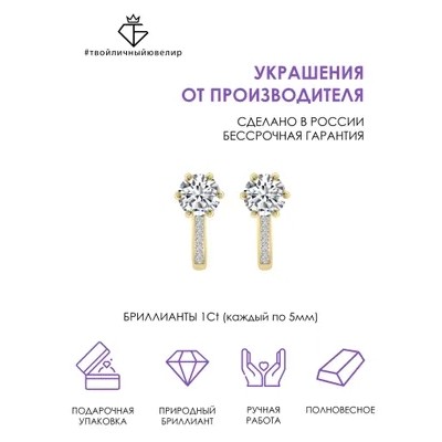 Золотые серьги с бриллиантами бренда ТВОЙЛИЧНЫЙЮВЕЛИР наполнены мощной энергетикой - подойдут для девушек и женщин, которые выбирают яркость и эффектность. Роскошное и в то же время лаконичное ювелирное украшение, выполненное из желтого золота 585 пробы, подчеркнет Вашу неповторимость и откроет новые возможности для стильных экспериментов. В качестве вставки в серьгах используются бриллианты, способные на свету переливаться всеми цветами радуги и издавать невероятный блеск, придавая своей обладательнице женственность и элегантность. Дизайнерские сережки, выполненные опытными ювелирами России, оснащены удобной и надежной английской застежкой, которая обеспечивает прочную фиксацию ювелирного изделия на Вашем ушке. Тип конструкции делает золотые серьги самыми удобными - они не мешают одеваться, не цепляют волосы и, при правильном подборе размера, не доставляют дискомфорта во время сна. Именно по этой причине серьги из золота часто выбирают не только для взрослых девушек, но и для маленьких модниц. Благодаря минималистичному, продуманному дизайну серьги-гвоздики можно легко сочетать с любыми другими украшениями и нарядами. Такие пусеты из золота никогда не выйдут из моды и всегда будут актуальны. Сережки-гвоздики – одни из самых популярных моделей, они универсальны, и их легко подобрать под любой типаж и образ, стиль одежды, возраст владелицы. Аккуратные и практичные пусеты с бриллиантом - это универсальное украшение для любого образа:  на деловой встрече в комбинации со строгим офисным нарядом, на романтическом свидании, и даже на роскошном приеме. Небольшой размер сережек подчеркивает женственность владелицы и ее элегантность при любых обстоятельствах. Бриллиантовые пусеты идут всем без исключения: блондинкам и брюнеткам, смуглым и светлокожим девушкам, голубоглазым и кареглазым. Если вы хотите быть в центре внимания или же ищете украшение на торжественное мероприятие, то серьги с драгоценными камнями — это ваш вариант! Пусеты поставляются в брендированной упаковке и идеально подходят в качестве замечательного подарка на особую дату или просто так, чтобы восхитить и удивить любимую жену, маму или дочку и оставить неизгладимое впечатление. Купив ювелирные изделия от производителя ручной работы, вы получаете бессрочную гарантию! С любовью и заботой о Вас, ТВОЙЛИЧНЫЙЮВЕЛИР!