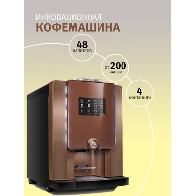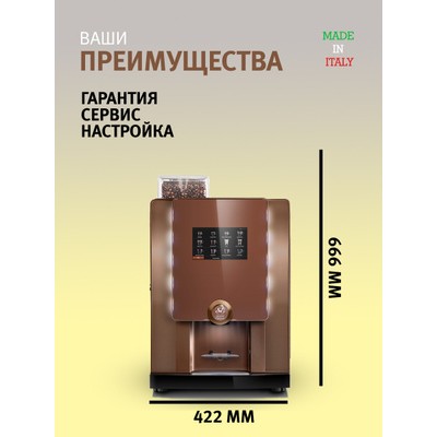 Возможности использования различных платежных решений, в том числе сервисного модуля Change Giver и монетоприемника с функцией выдачи сдачи, значительно увеличить количество проданных напитков без необходимости привлечения дополнительного персонала. Автоматизированная выдача исключает приготовление неоплаченных напитков.Вы можете подключить к ней модем и удаленно контролировать работу устройства и продажи из любой точки, где есть интернет. Кофе-машина Grande premium модельного laRhea V + предназначена для высокой проходимости и приготовления напитков большого объема формата Coffee to Go. Сенсорный экран с возможностью интерактивного общения с пользователем – вы можете транслировать сообщения и свой логотип, рекламу, информацию о напитках и менять ее по желанию.Увеличенный прозрачный бункер для зерна на 200 чашек зерновых напитков и до 4-х бункеров для растворимых ингредиентов дают максимум возможностей для составления вашей оригинальной кофейной карты. Вы можете настроить 48 вариантов напитков.Машина также может работать одновременно на сухом и на живом молоке.Включает в себя новейшие запатентованные технологии, обеспечивающие наивысшее качество приготавливаемых напитков:Varitherm – индукционный нагреватель воды, позволяющий не только экономить электроэнергию, но и обеспечивающий возможность приготавливать каждый напиток при идеальной для него температуре. Varitherm дает возможность устанавливать разную температуру воды для каждого клапана в одном напитке.Variflex – профессиональный заварочный узел, позволяющий сварить напитки с использованием индивидуального количества кофе и обеспечивающий неизменное качество от чашки к чашке.Стандартная процедура промывки, полностью программируемая клавишами выбора или с помощью программного обеспечения Rheaction (опционально).Офисов, кафе, фастфудов, баров, отелей, АЗС.Примерное меню:48 напитков любых конфигураций и объемов, с молоком или без, с живым или растворимым – возможности практически безграничны!Рекомендации перед получением кофемашины от службы доставки для клиентовУважаемые клиенты, вы получаете настроенный автомат под наши ингредиенты, чтобы его настроить под ваши ингредиенты вам понадобиться: - высокоточные весы до 200 гр. - ингредиенты для кофемашинПорядок действий после получения автомата:- При сотруднике службы доставки вскрыть коробку и убедиться в целостности и сухости упаковки- Включить автомат в питание и убедиться в работоспособности автомата- Подписать акт полученияДалее, вам нужно либо самостоятельно произвести настройки кофемашины по вашим ингредиентам, либо обратиться за помощью к нашим партнерам в вашем регионе (данная услуга платная)При самостоятельной настройке, мы рекомендуем изучить инструкцию и посмотреть видеоинструкцию по калибровке кофе и ингредиентов для кофемашин Rheavendors